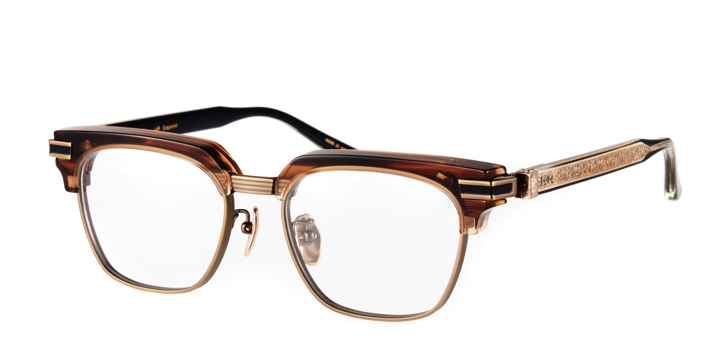 「シンプルの中に、美しいシルエット、繊細な日本の巧職人技、そしてユーザーに感激を与えるフレームを創り出します」「身に付けることで、自身のファッションに与える影響の大きさ、ステータスを示すことができます。」品質と細部へのこだわり、高品質で耐久性のあるメガネを創り,長期間にわたって信頼できる製品を求める人にとって魅力的です。細部まで日本の巧職人が丁寧に作り込まれ、精緻なロココデザインをテンプルに地彫り彫金で作り出しました。まさに品質や機能性に価値を見出す人に魅力的な眼鏡です。職人技が光るウェリントン型のメガネです。伝統的な形ながら、エッジが効かした立体感のあるデザインになっています。まさに巧職人の磨き技はどの角度から見ても美しく、独特の存在感を持ちます。1950年代からインスパイアしたサーモントスタイルのスクエアフレームデザイン。シャープ感溢れるエッジを強く押し出したレンズシェイプによってあらゆる角度から見てもお洒落を演出し、8mm厚のを油圧プレスで創り出しましたブローパーツも一般的なサーモントよりも主張を押し出したアイテムに仕上がっています。テンプルは1730年代に流行した、植物の葉のような複雑な曲線を用いたロカイユ装飾をインスパイアし、優雅で繊細なロココ模様を地彫り彫金で創り出しました。トレミー48のアイコン鎧のオニキス七宝から、合口部分の新機構の一体鋳造型ヒンジが、一段と高級感を演出しています。